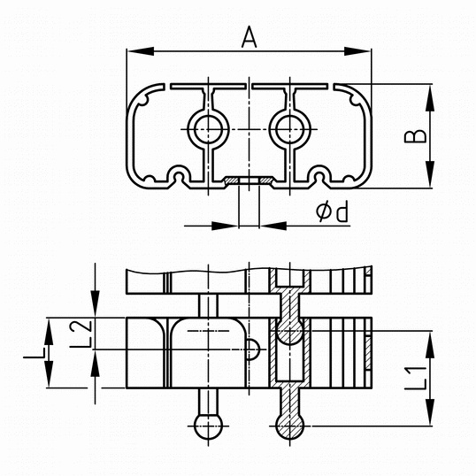 | Rozměr A | Rozměr B | Rozměr d | Rozměr L | Rozměr L1 | Rozměr L2 | Barva | Objednací číslo | |