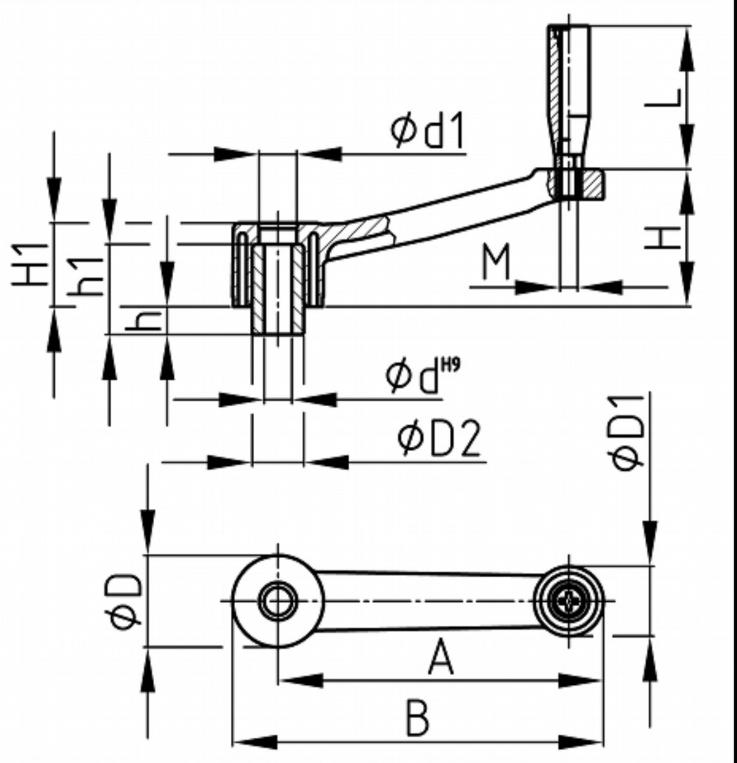 | Rozměr A | Rozměr B | Rozměr D | Rozměr d H9 | Rozměr D1 | Rozměr d1 | Rozměr D2 | Rozměr H | Rozměr h | Rozměr H1 | Rozměr h1 | Rozměr L | Rozměr M | Objednací číslo | |