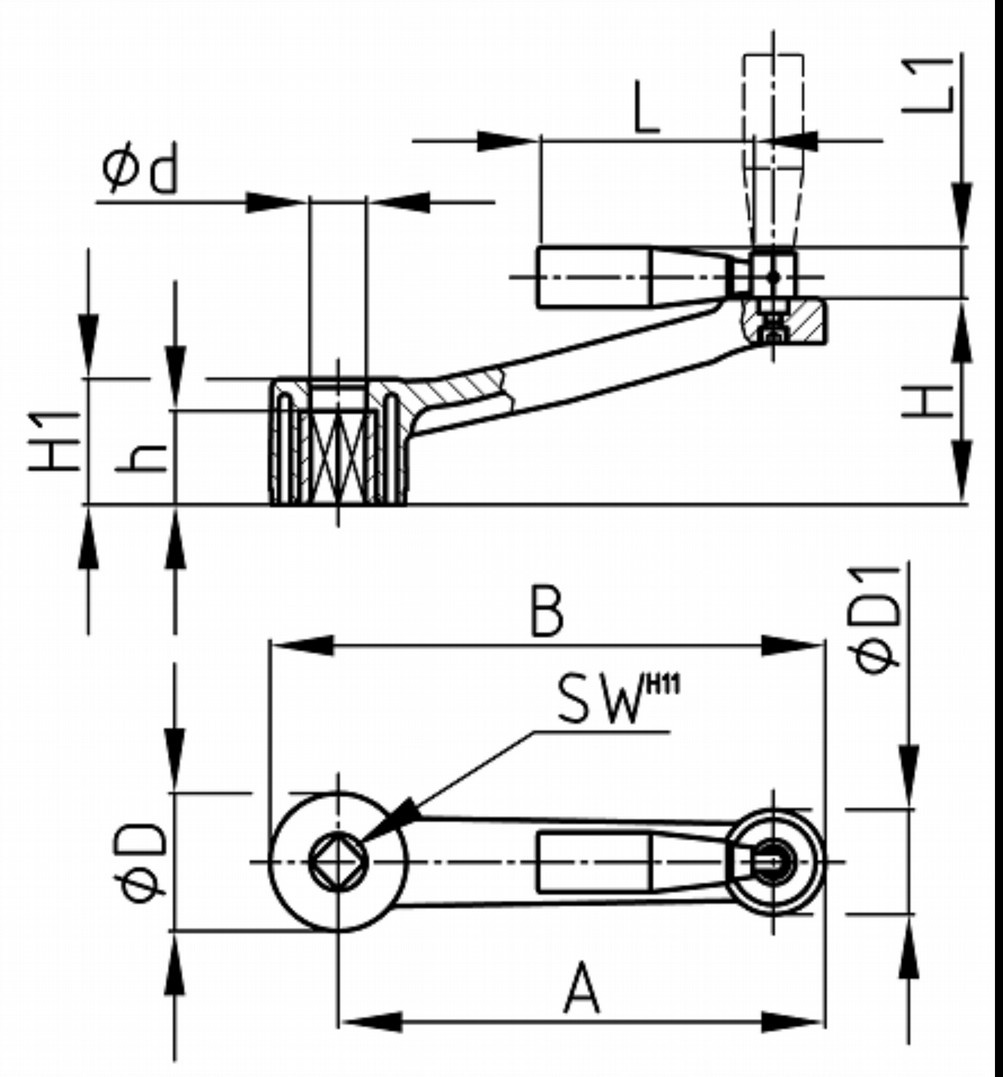 | Rozměr A | Rozměr B | Rozměr D | Rozměr d | Rozměr D1 | Rozměr H | Rozměr h | Rozměr H1 | Rozměr L | Rozměr L1 | Rozměr SW H11 | Objednací číslo | |