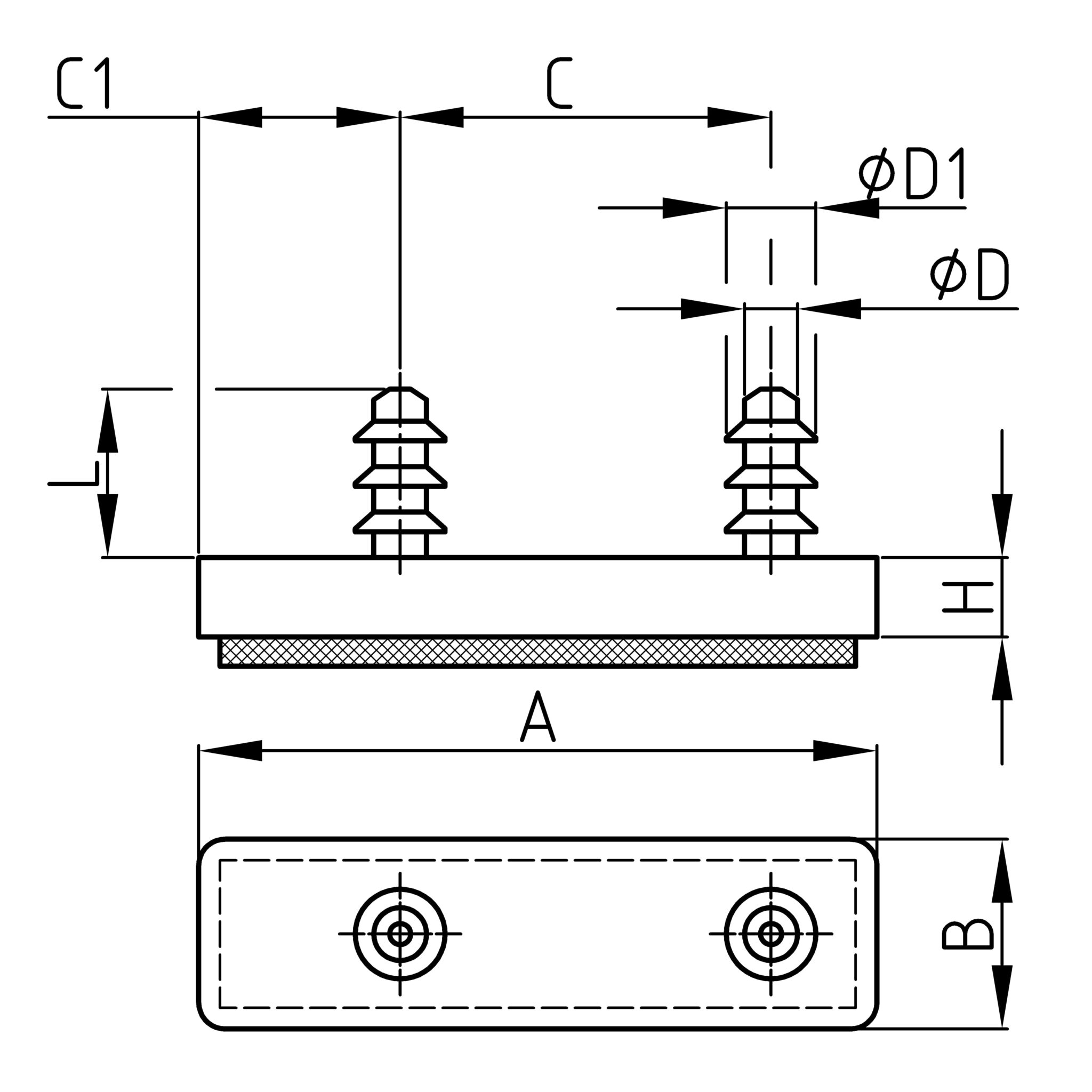 Kluzák čtyřhranný plochý s čepy a filcem