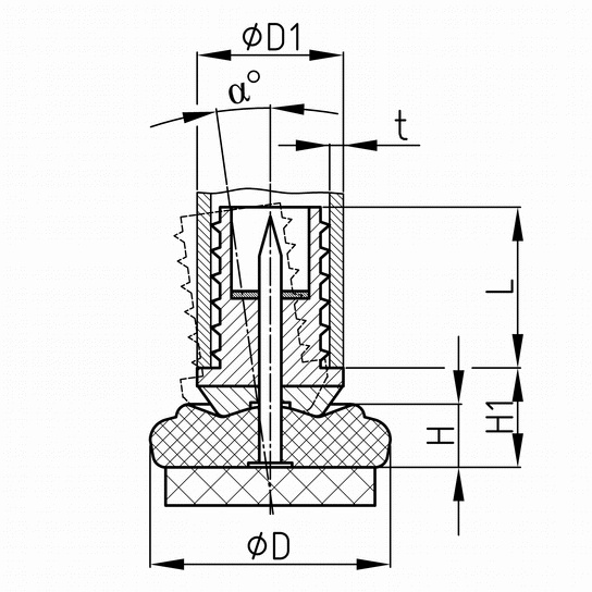 | Rozměr α | Rozměr D | Rozměr D1 | Rozměr H | Rozměr H1 | Rozměr L | Rozměr t | Objednací číslo | |