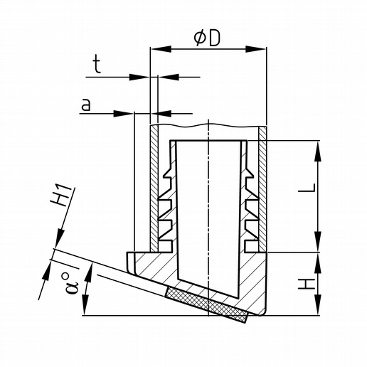 | Rozměr α | Rozměr a | Rozměr D | Rozměr H | Rozměr L | Rozměr t | Objednací číslo | |