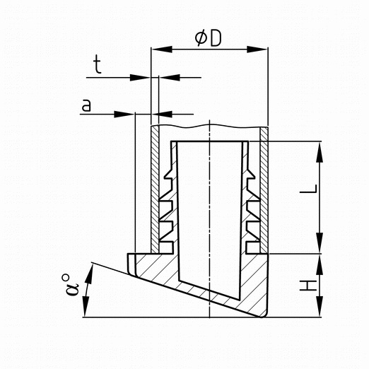 | Rozměr α | Rozměr a | Rozměr D | Rozměr H | Rozměr L | Rozměr t | Objednací číslo | |