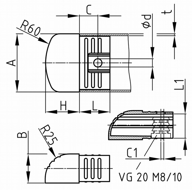 | Rozměr A | Rozměr B | Rozměr C | Rozměr C1 | Rozměr d | Rozměr H | Rozměr L | Rozměr L1 | Rozměr t | Objednací číslo | |