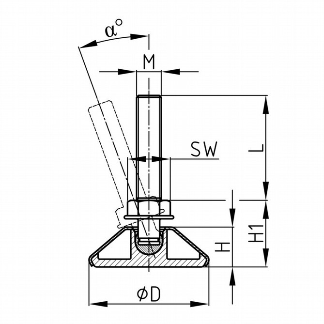 Stavitelný šroub – kloubový kluzák pro střední zatížení s plastovým kulovým čepem, ocelovou krytkou
