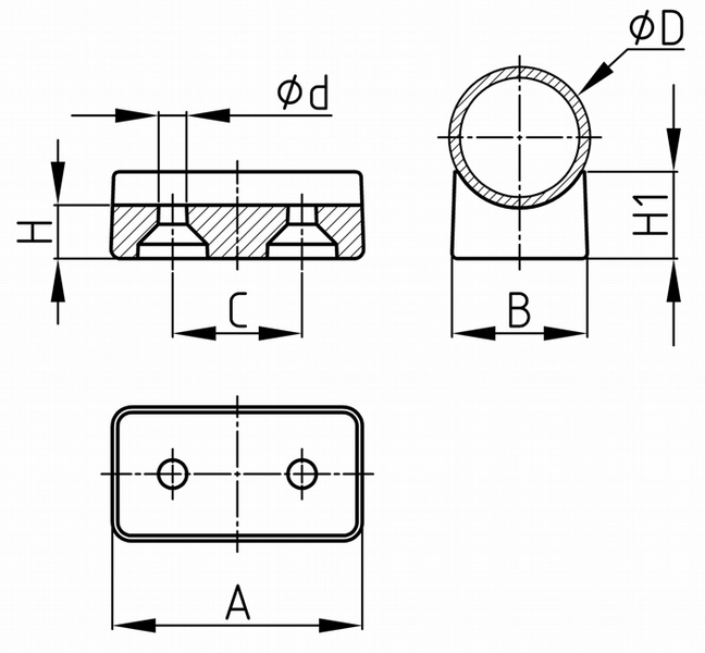 Sedlový kluzák částečně obepínající trubku – s vrty