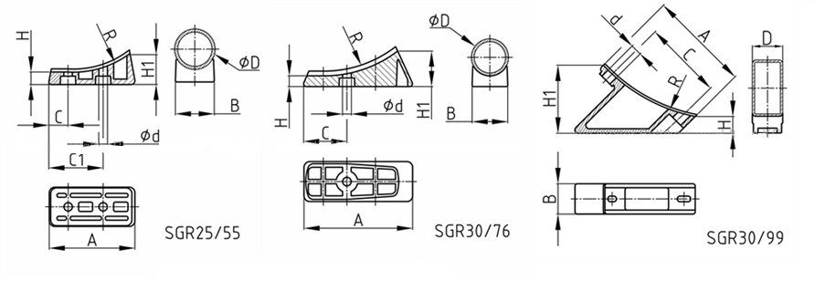 | Rozměr A | Rozměr B | Rozměr C | Rozměr C1 | Rozměr d | Rozměr D | Rozměr H | Rozměr H1 | Rozměr R | Objednací číslo | |