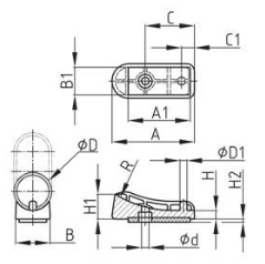| Rozměr A | Rozměr A1 | Rozměr B | Rozměr B1 | Rozměr C | Rozměr C1 | Rozměr d | Rozměr D | Rozměr D1 | Rozměr H | Rozměr H1 cca | Rozměr H2 | Rozměr R | Objednací číslo | |