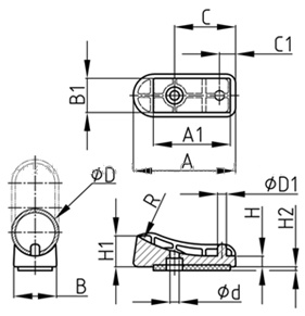 | Rozměr A | Rozměr B | Rozměr A1 | Rozměr B1 | Rozměr C | Rozměr C1 | Rozměr d | Rozměr D | Rozměr D1 | Rozměr H | Rozměr H1 cca | Rozměr H2 | Rozměr R | Objednací číslo | |