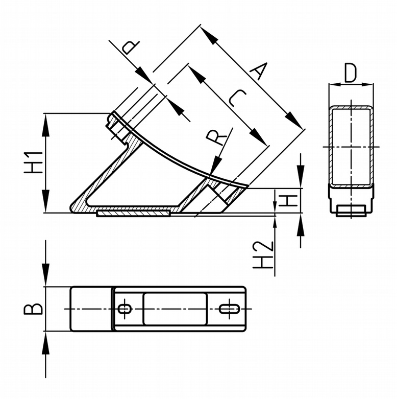 | Rozměr A | Rozměr B | Rozměr C | Rozměr d | Rozměr D | Rozměr H | Rozměr H1 | Rozměr H2 | Rozměr R | Objednací číslo | |