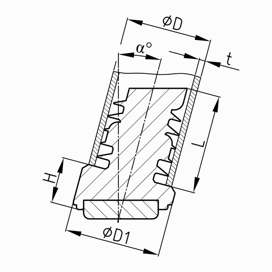 | Rozměr α | Rozměr D | Rozměr D1 | Rozměr H | Rozměr L | Rozměr t | Objednací číslo | |