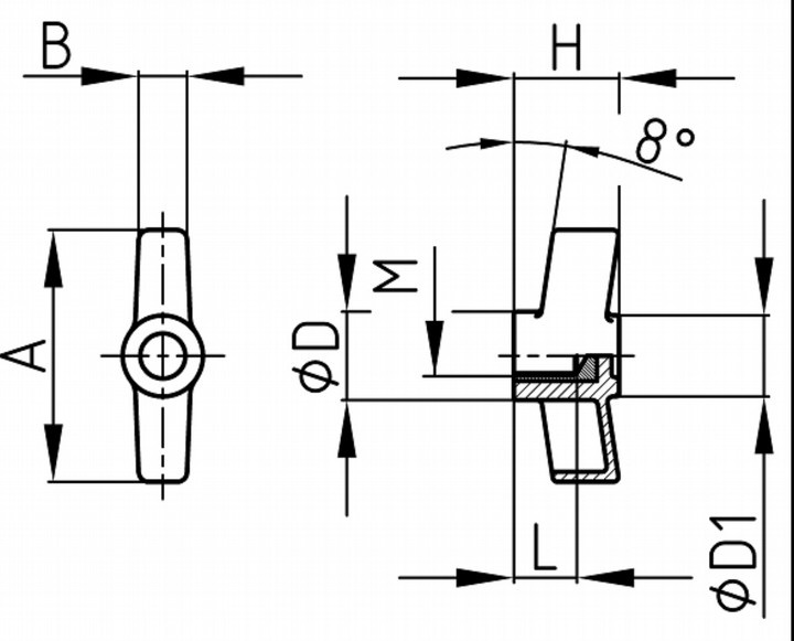 Úvod Sortiment Křídlové šrouby a matice, T-rukojeti Křídlová matice
