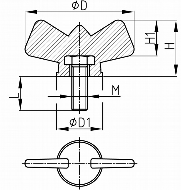 Úvod Sortiment Křídlové šrouby a matice, T-rukojeti Křídlový šroub