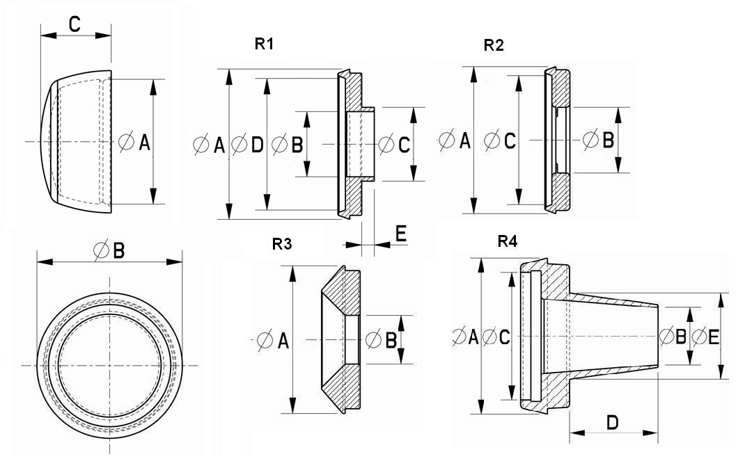 Krytky K4 – použití pro podložky typů R1, R2, R3 a R4