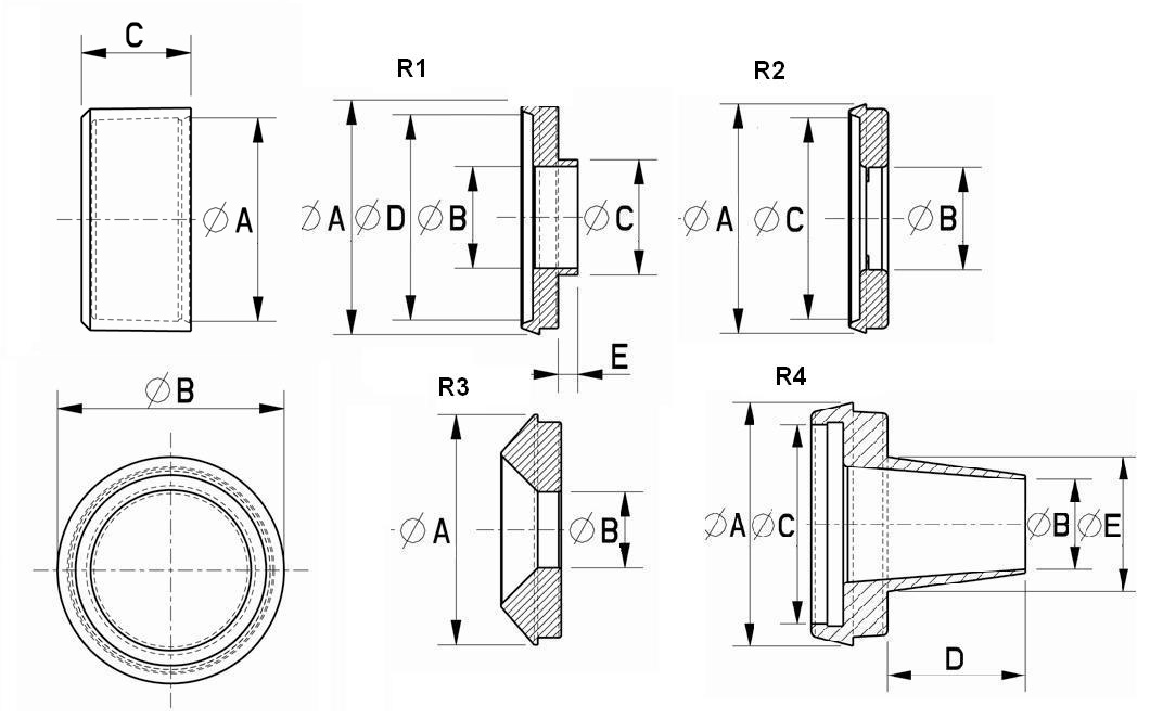 Krytky K3 – použití pro podložky typů R1, R2, R3 a R4