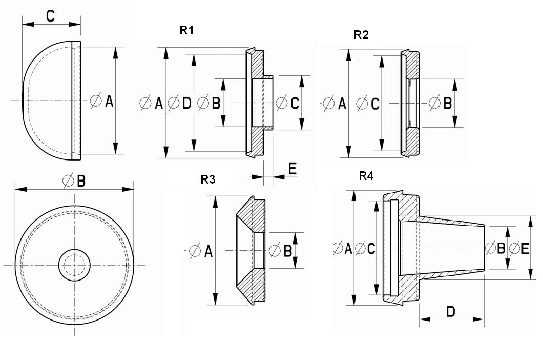Krytky K1 – použití pro podložky typů R1, R2, R3 a R4