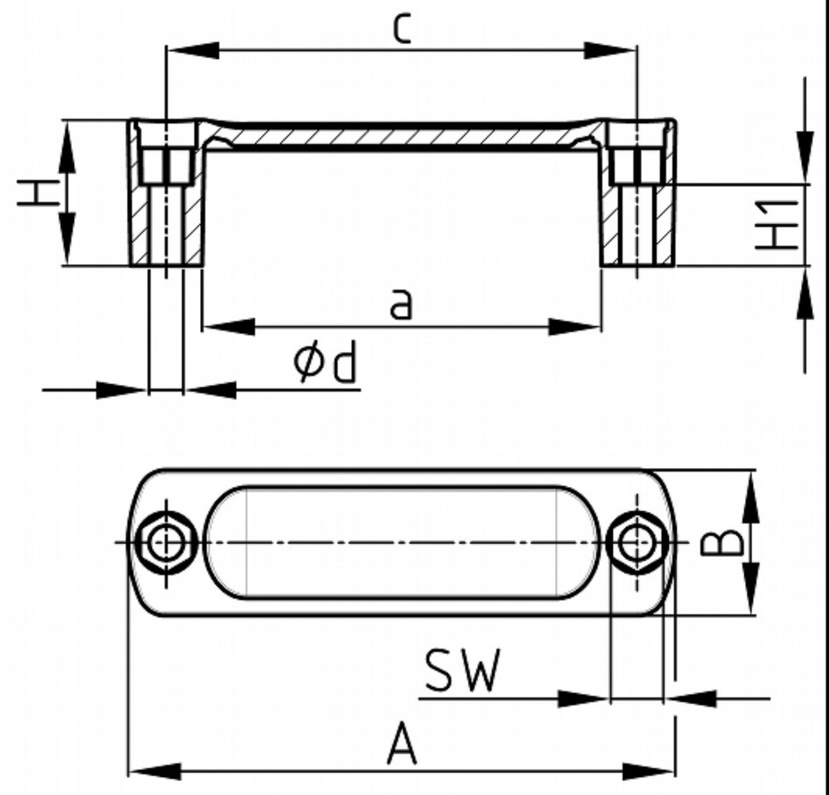 | Rozměr A | Rozměr a | Rozměr B | Rozměr c | Rozměr d | Rozměr H | Rozměr H1 | Rozměr SW | Objednací číslo | |