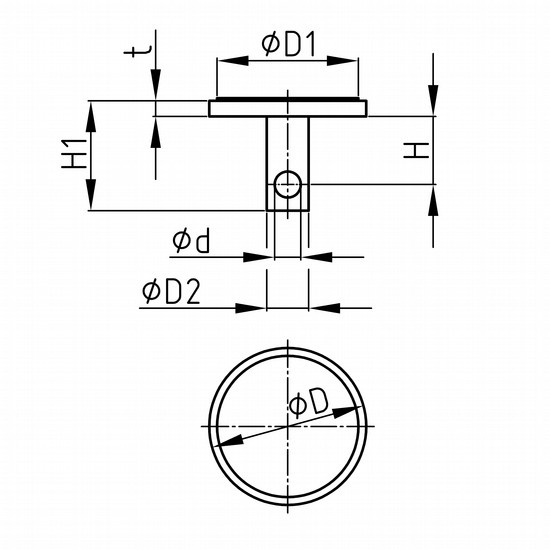 | Rozměr D | Rozměr D1 | Rozměr D2 | Rozměr d | Rozměr H | Rozměr H1 | Rozměr t | Objednací číslo | |
