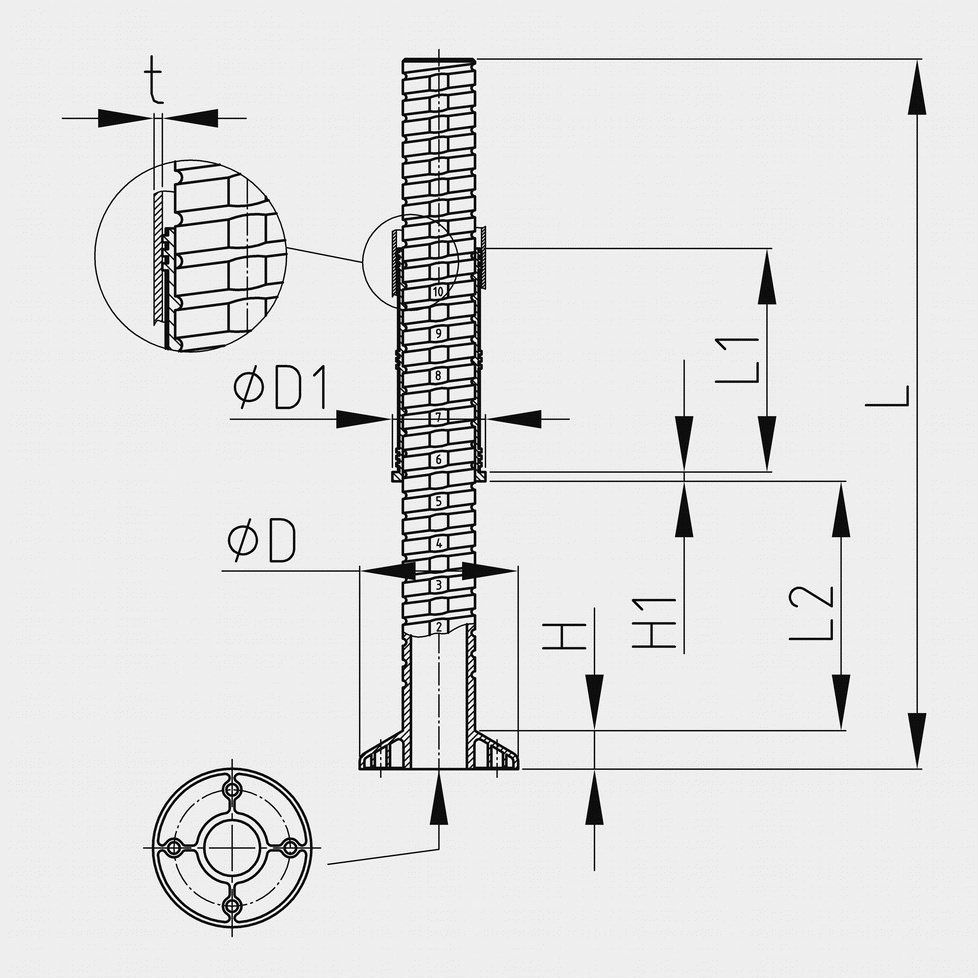 Nastavitelná záslepka – noha do trubky s kulatou dosedací plochou