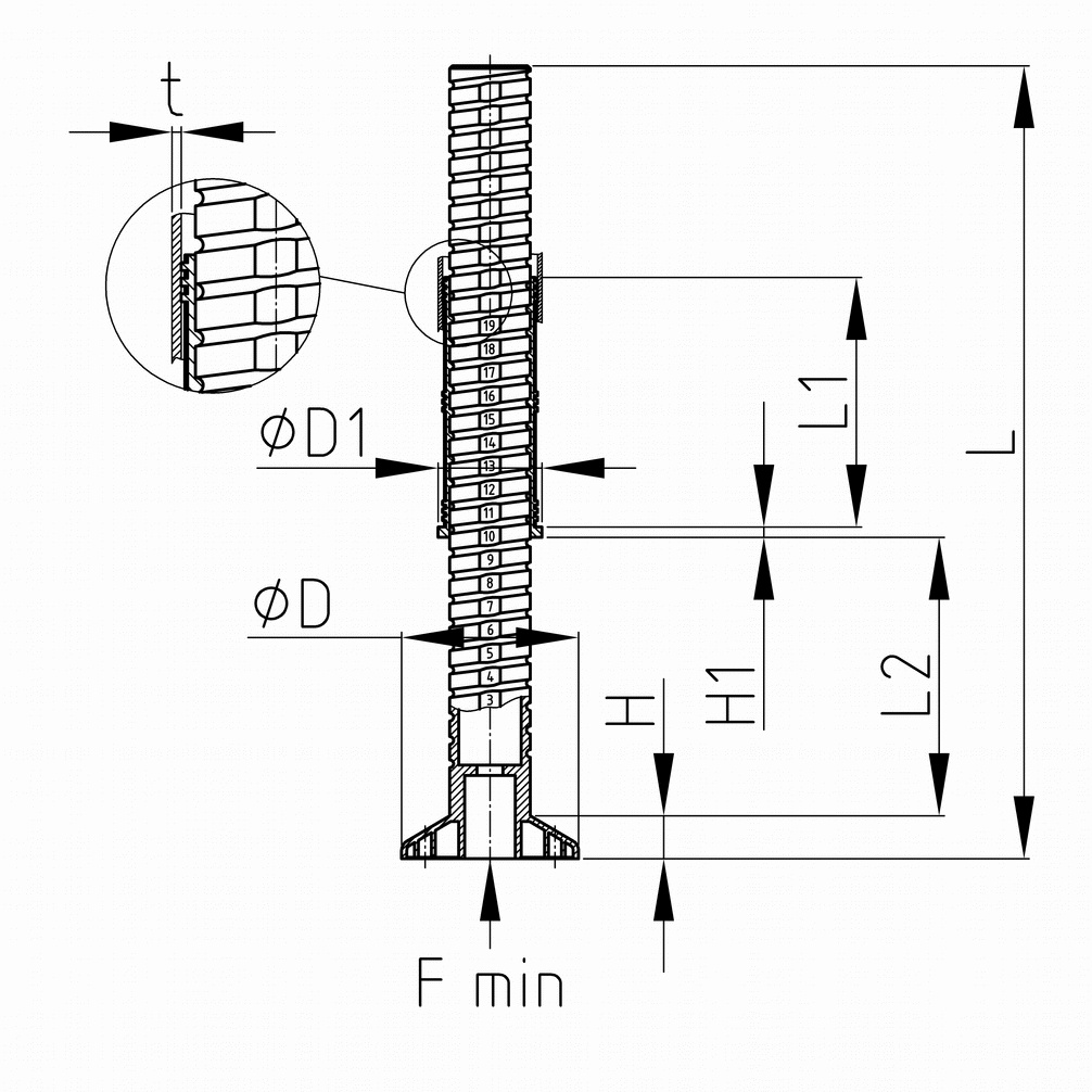| Rozměr D | Rozměr D1 | Rozměr H | Rozměr H1 | Rozměr L | Rozměr L1 | Rozměr L2 | Rozměr t | Objednací číslo | |