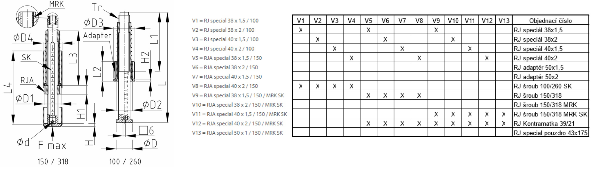 | Rozměr d | Rozměr D | Rozměr D1 | Rozměr D2 | Rozměr D3 | Rozměr D4 | Rozměr F | Rozměr H | Rozměr H1 | Rozměr H2 | Rozměr L | Rozměr L1 | Rozměr L2 | Rozměr L3 | Rozměr L4 | Rozměr Tr | Objednací číslo | |