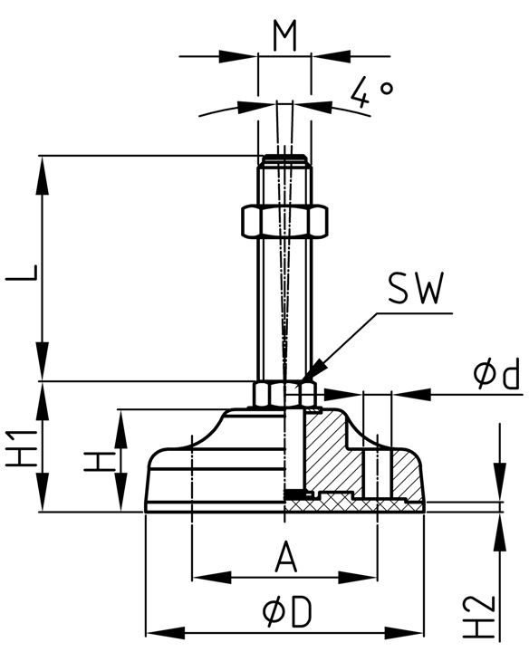 Úvod Sortiment Noha plast/guma - závit pozinkovaná ocel Noha ke strojům – pozink