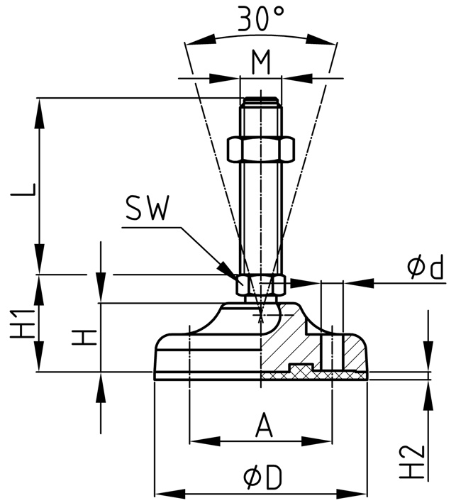 Úvod Sortiment Noha plast/guma – závit nerezová ocel Noha ke strojům s kloubem a možností upevnění – nerez