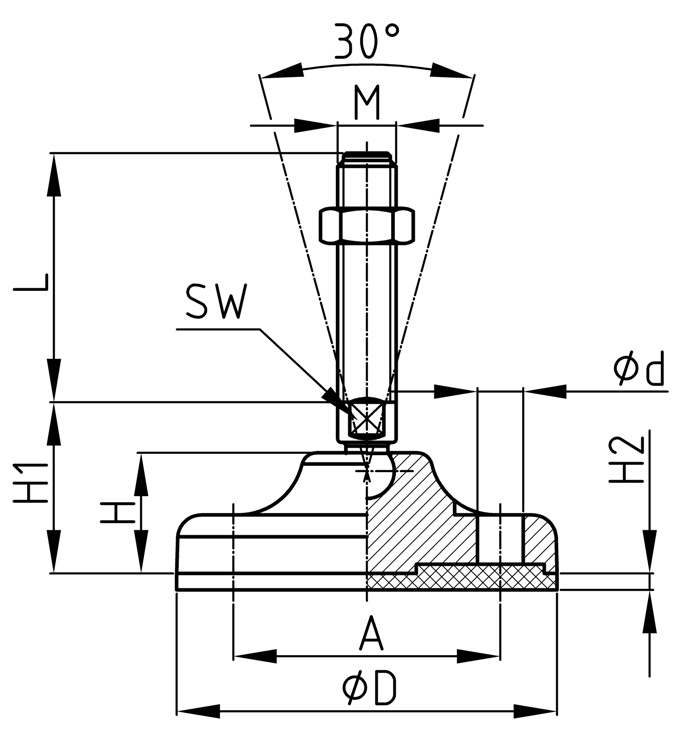 Úvod Sortiment Noha plast/guma - závit pozinkovaná ocel Noha ke strojům s kloubem a možností upevnění – pozink