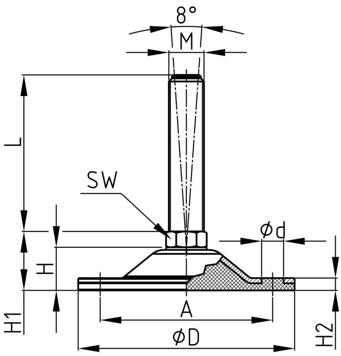Úvod Sortiment Noha ocel/guma – závit pozinkovaná ocel Noha ke strojům s možností upevnění – pozink