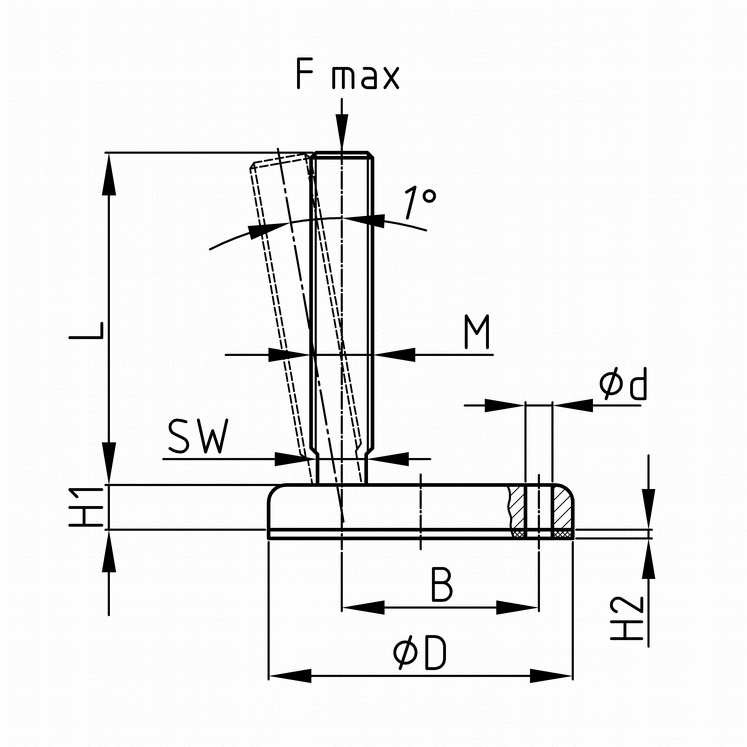 | Rozměr D | Rozměr B | Rozměr H1 | Rozměr H2 | Rozměr d | Rozměr F max. kg | Rozměr M | Rozměr L | Rozměr SW | Objednací číslo | |
