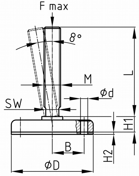 | Rozměr D | Rozměr B | Rozměr H1 | Rozměr H2 | Rozměr d | Rozměr F max | Rozměr L | Rozměr M | Rozměr SW | Objednací číslo | |