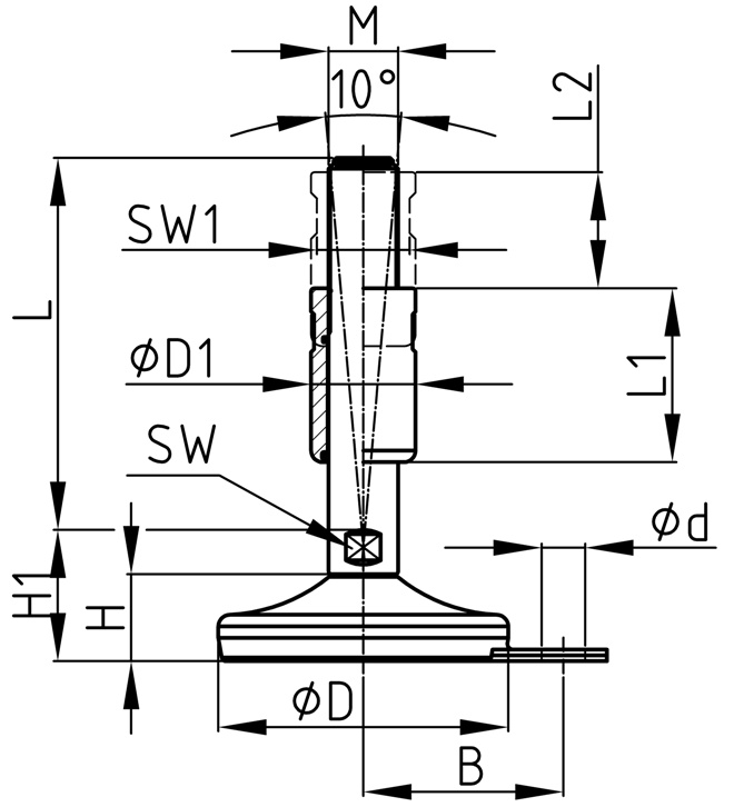 Díky krytému přechodu závitu/nohy lze snadno čistit.