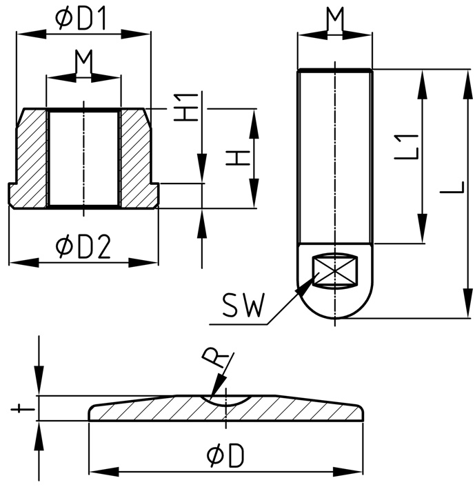 | Rozměr D | Rozměr D1 | Rozměr D2 | Rozměr F max | Rozměr H | Rozměr H1 | Rozměr H2 | Rozměr L | Rozměr L1 | Rozměr M | Rozměr SW | Objednací číslo | |