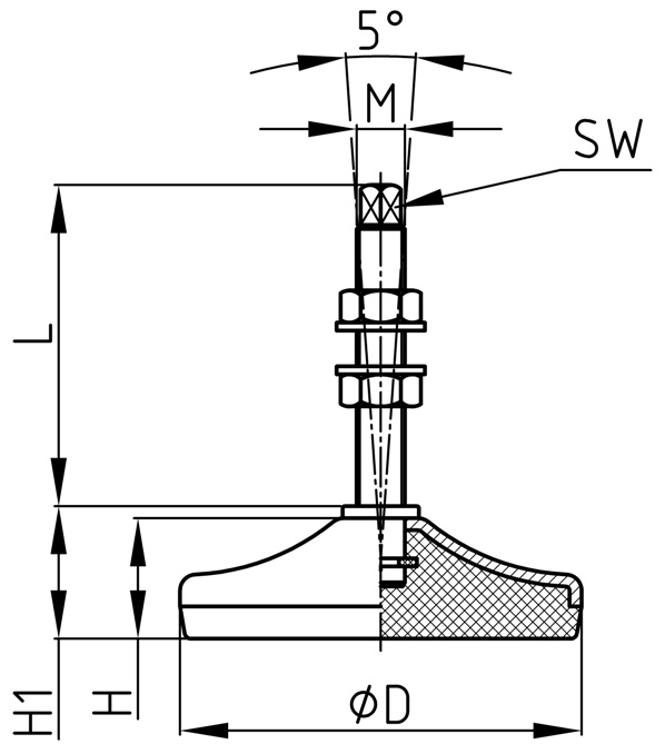 Noha vyrobena z lisovaného plechu, vulkanizovaná guma je k plechu pevně přilepena. Tento spoj