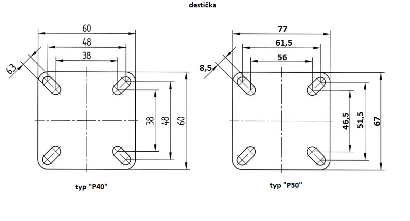 Uchycení s destičkou (P40 – 60 x 60 mm, P50 – 77 x 67 mm)