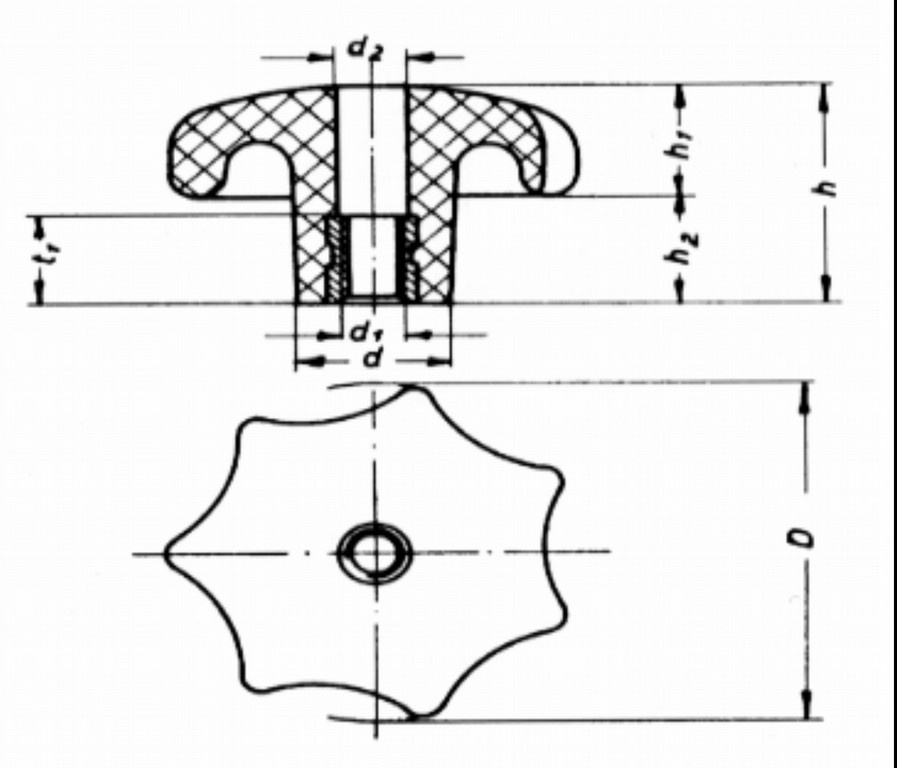 Úvod Sortiment Hvězdicové šrouby a matice Ovládací hlavice – průchozí otvor – závit (DIN 6336 E)