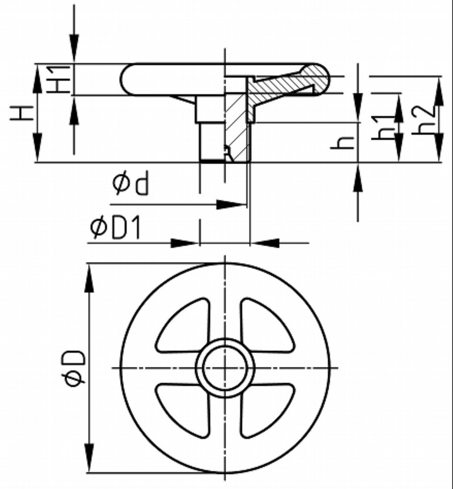 | Rozměr D | Rozměr d | Rozměr D1 | Rozměr H | Rozměr h | Rozměr H1 | Rozměr h1 | Rozměr h2 | Objednací číslo | |