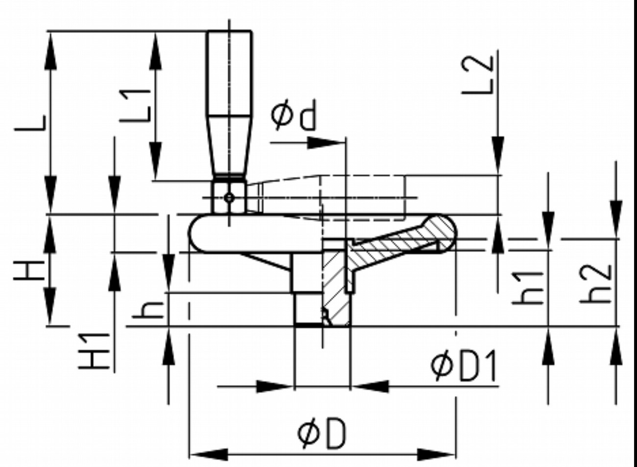 | Rozměr D | Rozměr d | Rozměr D1 | Rozměr H | Rozměr h | Rozměr H1 | Rozměr h1 | Rozměr h2 | Rozměr L | Rozměr L1 | Rozměr L2 | Objednací číslo | |