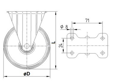 | Rozměr D - Průměr kolečka | Rozměr Šířka běhounu | Rozměr L - Stavební výška | Rozměr Hmotnost | Rozměr Dynamická nosnost | Rozměr Statická nosnost | Objednací číslo | |