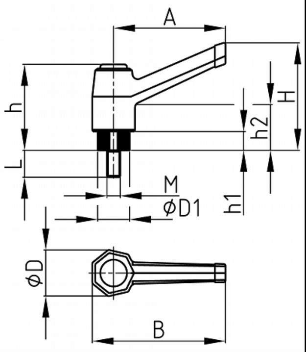 Úvod Sortiment Páčky/Kličky Přestavitelná páčka s kovovým šroubem