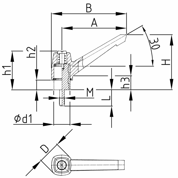 | Rozměr A | Rozměr B | Rozměr d1 | Rozměr D | Rozměr h1 | Rozměr h2 | Rozměr h3 | Rozměr H | Rozměr L | Rozměr M | Objednací číslo | |