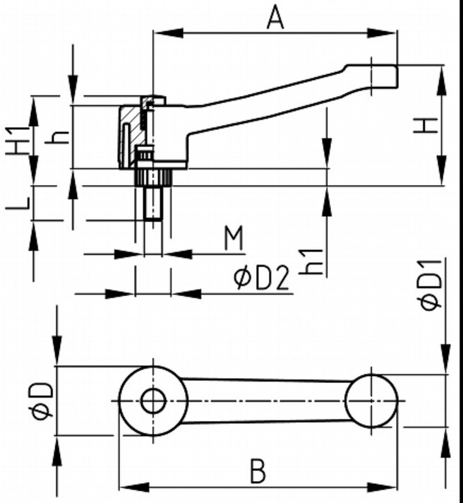 Úvod Sortiment Páčky/Kličky Přestavitelná páčka s kovovým šroubem