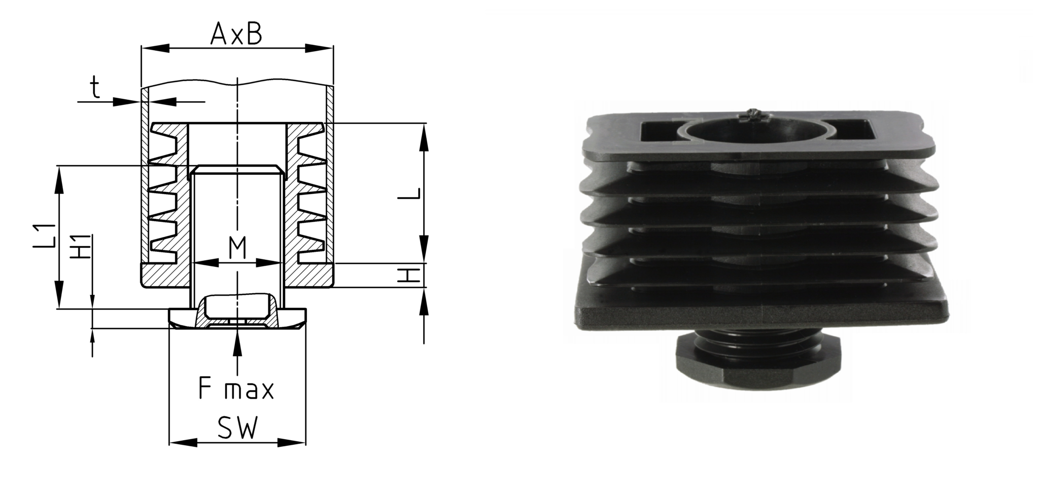| Rozměr A | Rozměr B | Rozměr F max. kg | Rozměr H | Rozměr H1 | Rozměr L | Rozměr L1 | Rozměr M | Rozměr WAF | Rozměr t | Objednací číslo | |