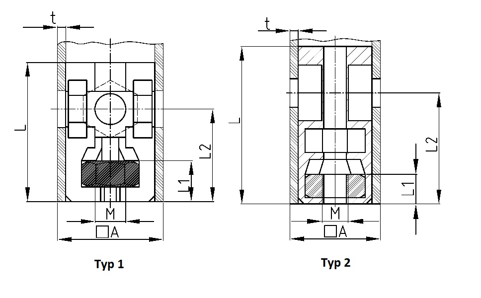 Spojka má kuželovitou komoru pro šestihrannou matici v podélném směru