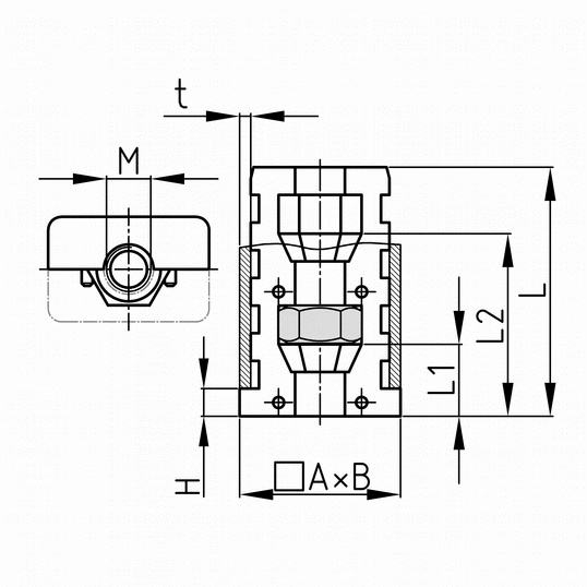 Záslepka do jeklu (sestavitelná) s šestihrannou maticí (vpředu)