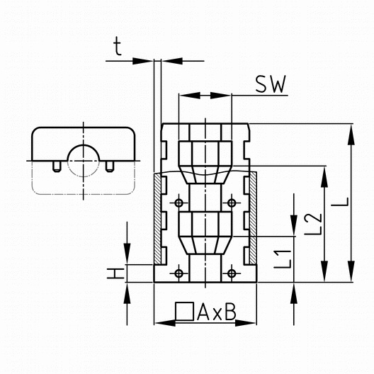 Dvoudílné pouzdro s objímkou má kuželové komory pro šestihranné matice nebo šrouby