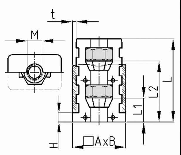 Záslepka do jeklu (sestavitelná) se 2 šestihrannými maticemi