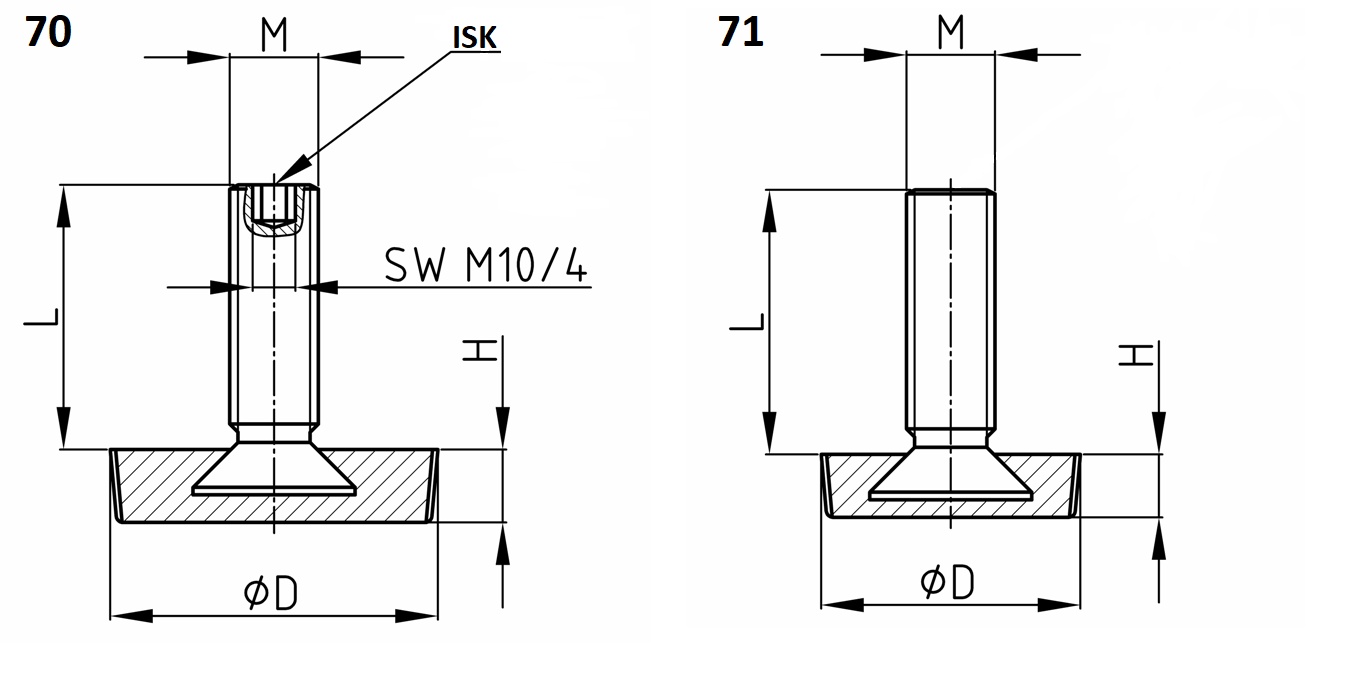 70: možnost varianty ISK – vnitřní šestihran na konci závitu
