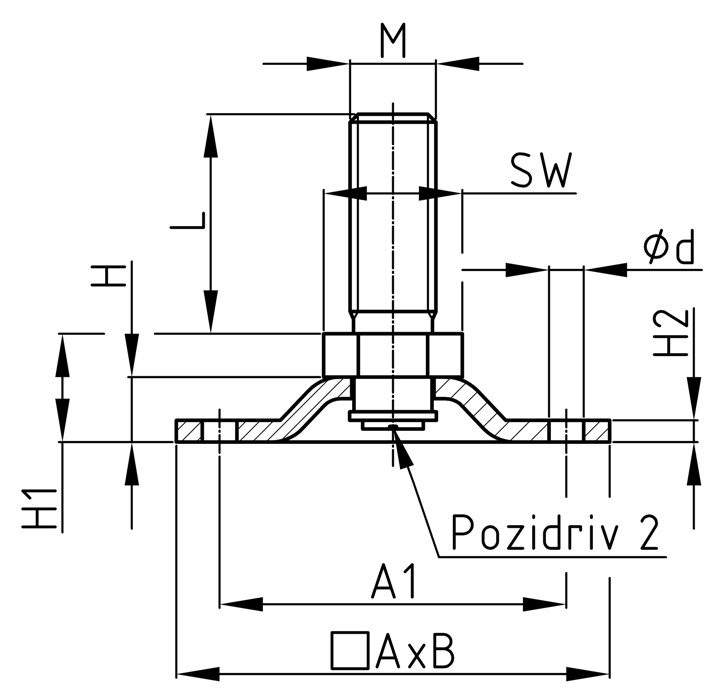 | Rozměr AxB | Rozměr A1 | Rozměr d | Rozměr H | Rozměr H1 | Rozměr H2 | Rozměr L | Rozměr M | Rozměr SW | Objednací číslo | |