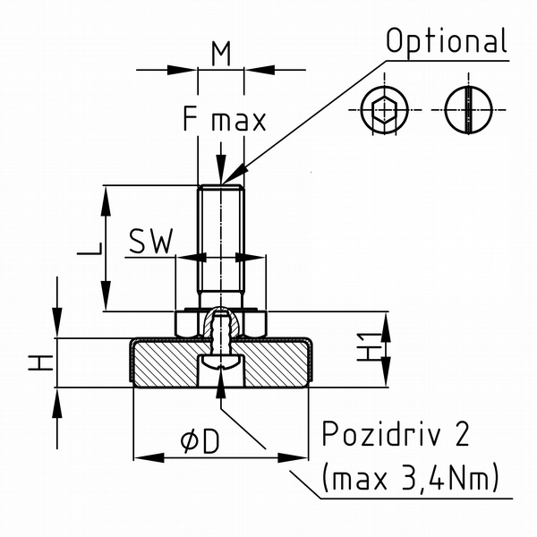 Možnost imbusu (ISK, rozměry M 8/SW 4, M10/SW 5)